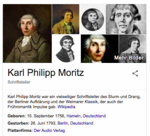 Moritz’s project was driven by the question: how can we find a mode of writing that does justice to the idiosyncrasies and detours of the individual’s life? How do we describe the individual-ness / uniqueness of the self?