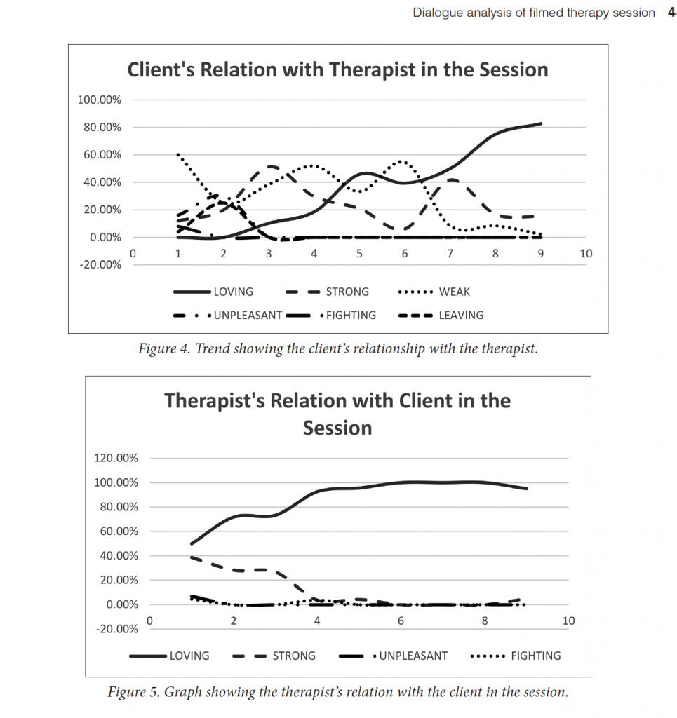 Psychotherapy process research takes us beyond answering the question, ‘does psychotherapy work?’ This area of research aims to study the hows and whats that happen within the psychotherapeutic session that potentiate change. The psychotherapeutic dialogue is an important source of data for psychotherapy process research. Micro-analyses of dialogical turns within the therapeutic session support the understanding of the therapeutic method. This paper introduces the Helbig Method of Dialogue Analysis. This method is founded upon four pillars: 1) that dialogue is implicit action between persons that is supported by explicit verbally uttered content; 2) that the individual’s mode of interaction within the dialogical dyad reflects the person’s relationship patterns; 3) that dialogue is an intersubjective process that leads to the development of new intersubjective configurations; and 4) that the observer-researcher’s phenomenological involvement plays a part in the analytical process. In this study, Bob Resnick’s video-recorded Gestalt therapy session entitled ‘A Rose on the Grave of my Family’ was selected. The transcription of the session was coded using the instrument, the Core Conflictual Relationship Theme – Leipzig/Ulm. Results obtained from this study are quantified graphical representations of the developing relationship between therapist and client. Simple to operate, scalable and practical, this method is designed for use by therapists and researchers who are interested in tracking, comparing and/or contrasting the developing psychotherapeutic alliance in a single or in multiple psychotherapy sessions.
